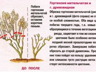 Spomladansko obrezovanje je najbolje opraviti hkrati s prvim hranjenjem. Med jesenskim obrezovanjem se odstranijo stare in šibke veje, pri čemer v grmu ne ostane več kot 12 zdravih stebel, pa tudi suha socvetja, ki morda ne prenesejo teže snega in povzročijo zlom poganjkov. Za popolno pomladitev starega grma se vse veje odrežejo pri korenu. Popolno okrevanje rastline se pojavi v 2 letih.