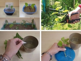 Razmnoževanje potaknjencev "Diamond Rouge" daje odlične rezultate in vam omogoča, da zelo hitro dobite novo rastlino. Da bi to naredili, junija iz enoletnih poganjkov odrežemo steblo s tremi pari listov. Spodnje liste takoj odtrgamo, na ročaju ostanejo 4 listi, nato pa ročaj položimo v raztopino Kornevina. Po nekaj dneh rastlino posadimo v mešanico šote in peska (2: 1) in jo poglobimo za 2/3. Nato so potaknjenci pokriti s steklenimi kozarci ali rezanimi plastičnimi steklenicami in očiščeni na toplem.