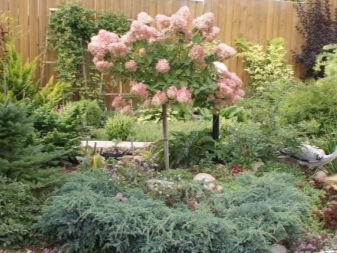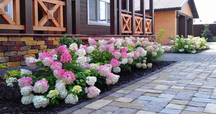 - Hortenzija, ki raste ob poti, je vedno lepa. V soseščini je izbirčen, dobro se bo ujemal z rastlinami škrlatno rožnate barve.