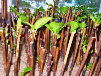 Pripravljene potaknjence posadimo v lončke z zemljo. Po fiksaciji se potaknjenec pošlje v rastlinjak (lahko ga preprosto pokrijete z zelo velikim kozarcem). Ukoreninjenje grma pade na prvih 14 dni po sajenju. Majhen grm mora biti v senci, treba ga je obilno zalivati, sicer se lahko hortenzija izsuši. Če na ročaju vidite nove liste, se je rastlina prilagodila.