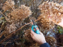 Da hortenzija ne izgubi svojih dekorativnih lastnosti, jo je treba odrezati. Obrezovanje je lahko tako pomlajevalno kot tudi oblikovno. Zahvaljujoč obrezovanju grm raste hitreje. Oblikovanje in sanitarno obrezovanje je treba opraviti pred odlomom popkov spomladi, pomlajevanje, dokler se ne pojavijo novi poganjki. Jeseni je priporočljivo dodatno očistiti rastlino iz starih, obolelih vej in suhih listov, kar bo prispevalo k dobremu cvetenju v naslednji sezoni. Poleg tega morate grm pripraviti na prezimovanje, tako da njegove poganjke povežete v šop in pritisnete k tlom.