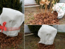 Od zgoraj so pokriti s posebnim okvirjem iz tkanega materiala, burlapa ali smrekovih vej. Spomladi se zavetje odstrani, stara plast mulča se odstrani.