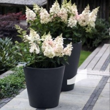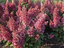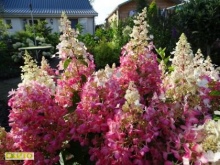 Grmičasta socvetja so lahko sestavljena iz več vrst cvetov (majhnih plodov, velikih in sterilnih), imajo stožčasto obliko in dolžino 30-35 cm.