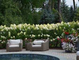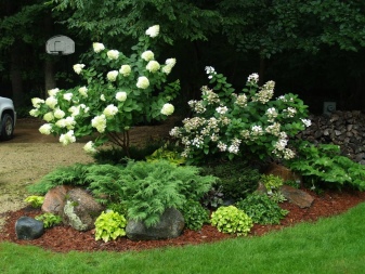 Ker se panična hortenzija dobro ujema z iglavci, lahko takšno sosesko naredite vrhunec mesta z ustvarjanjem mešanih zasaditev. Toda standardna različica sorte Limelight je še posebej cenjena. Uporabljajo ga oblikovalci v japonskih vrtovih, dobro izgleda v kadih kot okras za balkone in terase. Takšni pristanki lahko okrasijo tudi francoski park.