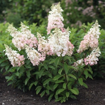 Za zmerno celinsko podnebje so primerne rastline z manj visokimi lastnostmi. Primer te vrste je "Pinky Winky". Vrt, kjer rastejo takšne hortenzije, takoj pritegne pozornost z razpršenimi belimi in rožnatimi cvetovi, ki izžarevajo sladko aromo.Višina "Pinky Winky" lahko doseže 2,5-3 m.