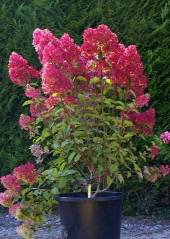 In to se lahko precej razlikuje pri paničastih hortenzijah. Hkrati višina ne vpliva le na dojemanje same kulture, temveč tudi na videz ansambla kot celote. Za sajenje v posodah so najprimernejše pritlikave sorte. Če je potrebno čim kasnejše cvetenje, imajo vrtnarji prednost sorti Tardiva. In šele ko se vse te točke upoštevajo, se lahko pomisli, ali je kultura subjektivna ali ne.