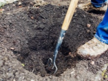 - Nato se pripravi sedež, za katerega se izkoplje luknja do globine 40 cm in širine do 60 cm, pri sajenju več grmov hkrati pa je treba med njimi upoštevati razdaljo 250 cm.