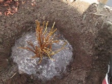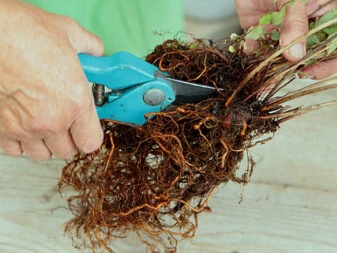 Koreninski sistem je treba nekoliko porezati in odstraniti odmrlo tkivo. Nato je treba grm presaditi v predhodno pripravljeno luknjo.