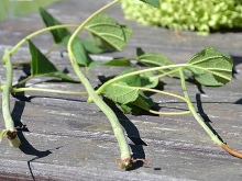 V prvem primeru se na listju pojavijo rumene lise, ki kasneje porumenijo in postanejo večje. V drugem primeru listje izgubi barvo, kar se običajno zgodi zaradi presežka humusa in apna v tleh. Za boj proti pepelasti plesni se uporablja raztopina na osnovi bakrovega sulfata, škropljenje s pripravki na osnovi kalijevega nitrata pa bo pomagalo odpraviti klorozo.