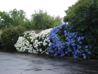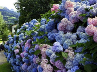 Veliko bolj zanimivo je eksperimentirati z razprostrtimi grmi, na katerih lahko dobite cvetove dveh različnih odtenkov hkrati. Lepo izgledajo popki, pobarvani na eni strani v modri barvi, na drugi pa roza. Da bi to naredili, je treba eno stran grma zaliti z vodo, napolnjeno s kovinskimi ostružki, drugo pa s kalijevim permanganatom. Rezultat je rastlina s tremi odtenki cvetov: naravni, roza in modri.